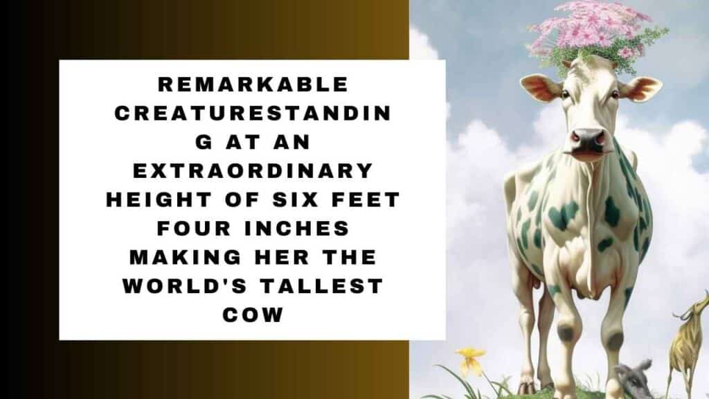 While most cows reach an average height of around four feet five inches, Blossom’s exceptional stature set her apart. She held the esteemed position of being the official greeter at a local resort, where her gentle nature and awe-inspiring presence left an indelible mark on visitors. Blossom’s towering figure and warm demeanor made her an unforgettable symbol of nature’s wonders.